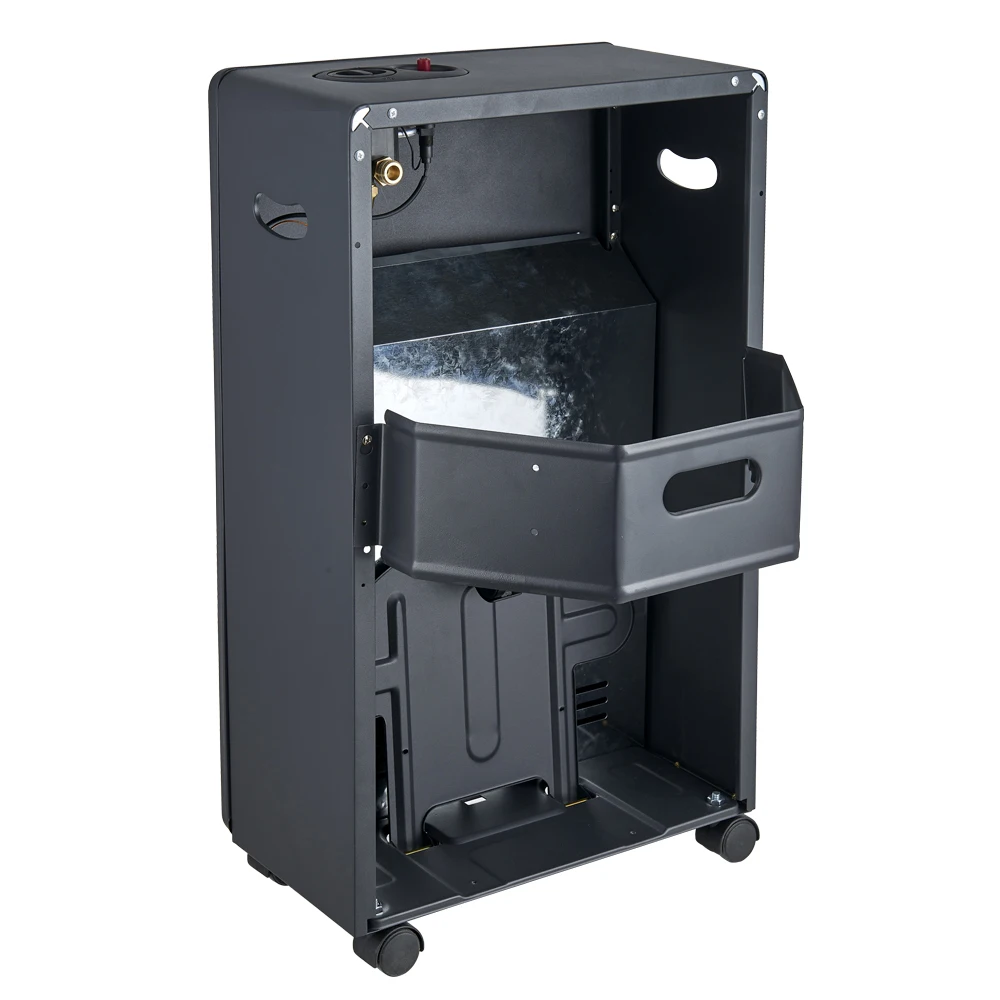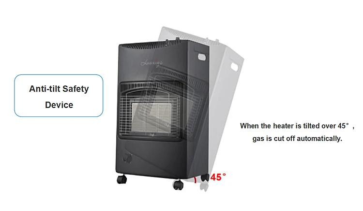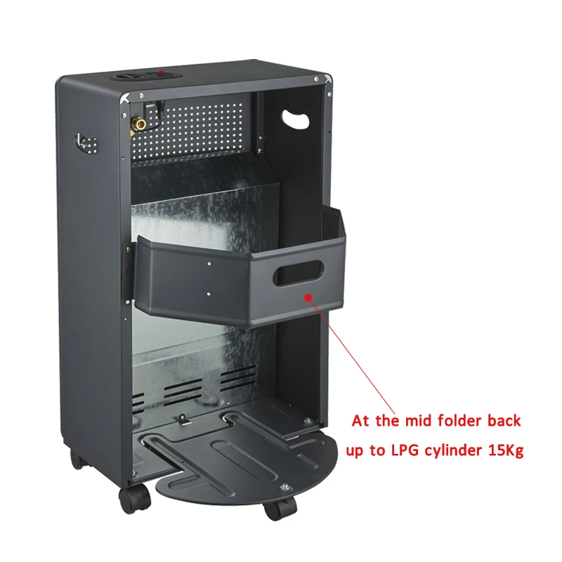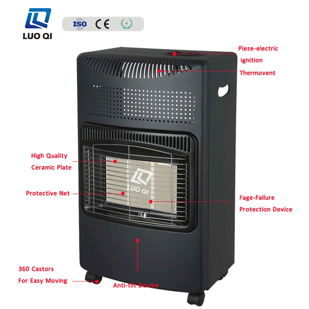 Κατασκευασμένος από το εργοστάσιο Luoqi, ο κινητός θερμαντήρας αερίου για σπίτι Luoqi αποτελεί μια πρακτική λύση θέρμανσης για το σπίτι σας. Η κάθετη γκρι σχεδίαση με τροχούς στη βάση και λαβή στην πλευρά επιτρέπει εύκολη μεταφορά από δωμάτιο σε δωμάτιο. Το μεταλλικό προστατευτικό πλέγμα εξασφαλίζει ασφάλεια, ενώ η εξαεριστική οπή στην κορυφή βελτιστοποιεί τη διασπορά της θερμότητας.