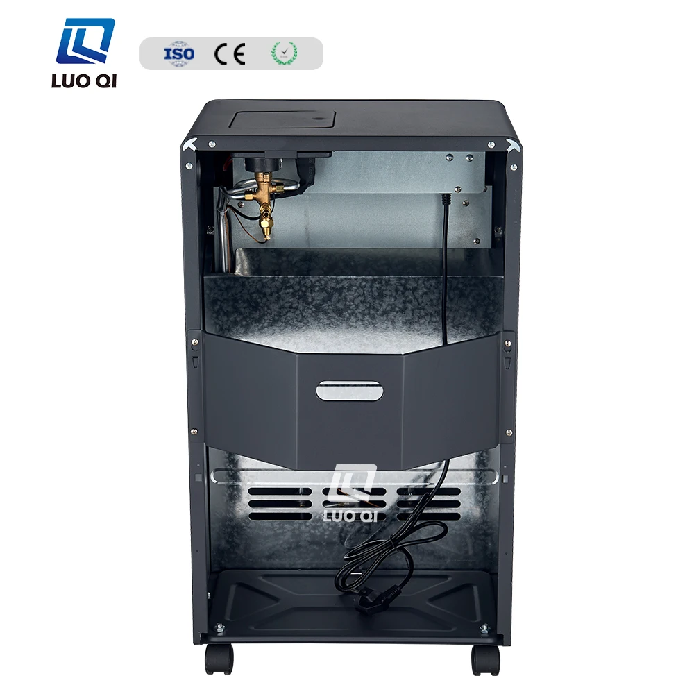 Découvrez le chauffage à gaz mobile Luoqi, une solution de chauffage intérieur haut de gamme fabriquée par l'usine Luoqi. Son design vertical noir élégant s'intègre parfaitement dans les salons et chambres à coucher, s'harmonisant avec divers styles de décoration intérieure. Équipé de roulettes en bas et d'une poignée latérale, il permet un déplacement facile d'un espace à un autre.
