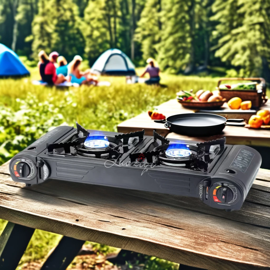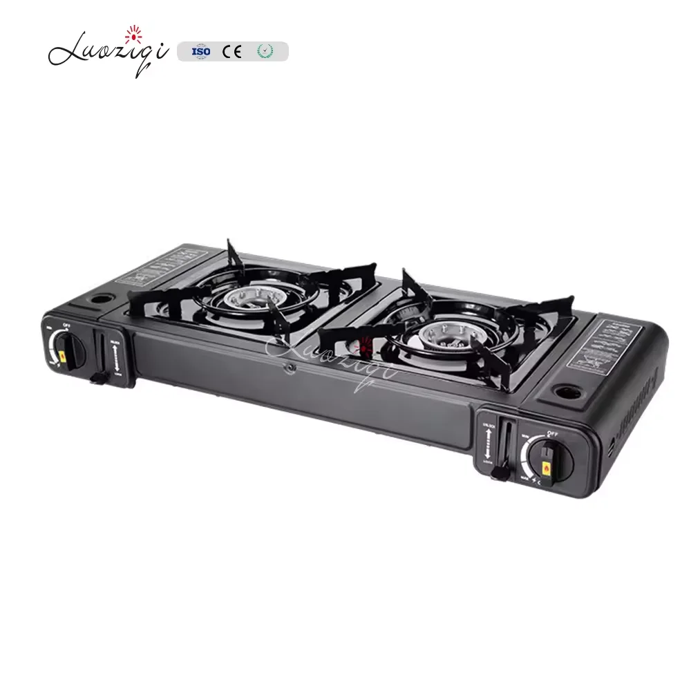 Luoqi Factory шығарған екі конфоркалы портативті бутан газды плитасы екі пісіру тиімділігін, дәл жылу реттеуді, портативтілікті, жақсартылған қауіпсіздікті және сенімді сапаны ұсынады және топтық сыртта немесе авариялық жағдайларда пісіру үшін идеалды таңдау болып табылады.