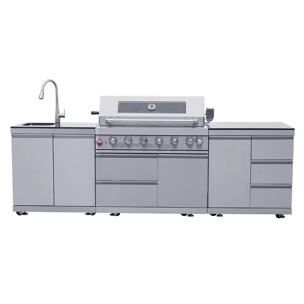 With CE Outdoor Gas Bbq Grill Oven Can Add Refrigerator Sink Commercial Potluck Grilled Steak Chicken Built-in Gas BBQ Grill